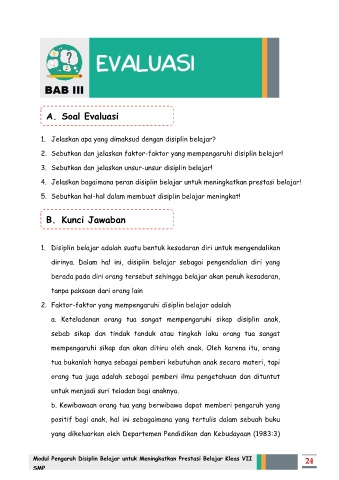 Modul Pengaruh Disiplin Belajar untuk Meningkatkan Prestasi Belajar Kleas VII 24
