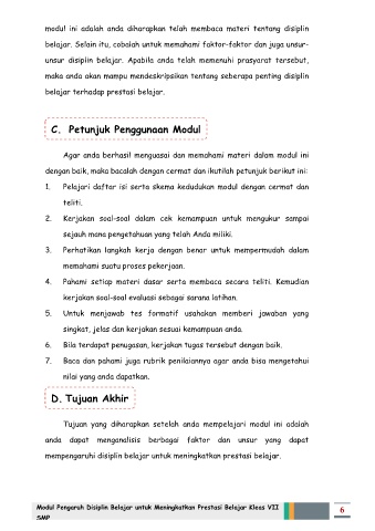 Modul Pengaruh Disiplin Belajar untuk Meningkatkan Prestasi Belajar Kleas VII 6