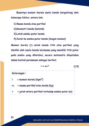 Besarnya  momen  inersia  suatu  benda  bergantung  oleh