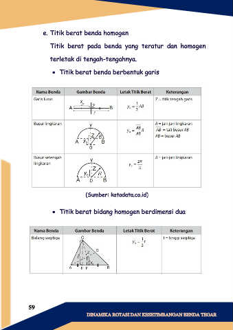 e. Titik berat benda homogen