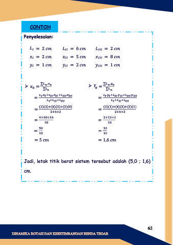 Jadi, letak titik berat sistem tersebut adalah (5,0 ; 1,6)