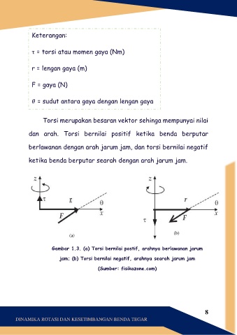 Gambar 1.3. (a) Torsi bernilai postif, arahnya berlawanan jarum