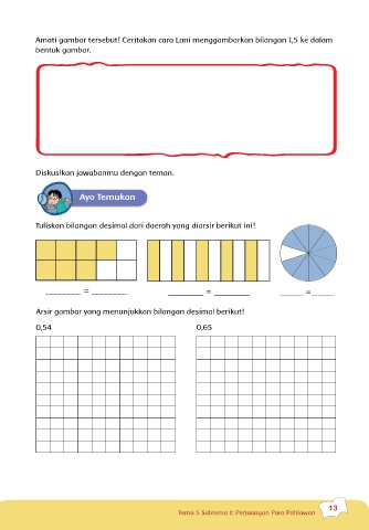Amati gambar tersebut! Ceritakan cara Lani menggambarkan bilangan 1,5 ke dalam