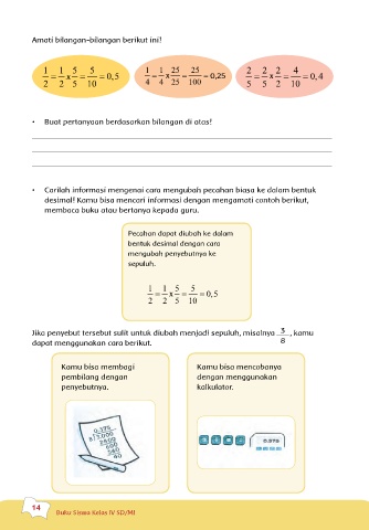 • Carilah informasi mengenai cara mengubah pecahan biasa ke dalam bentuk