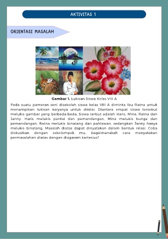 Pada suatu pameran seni disekolah siswa kelas VIII A diminta Ibu Ratna untuk