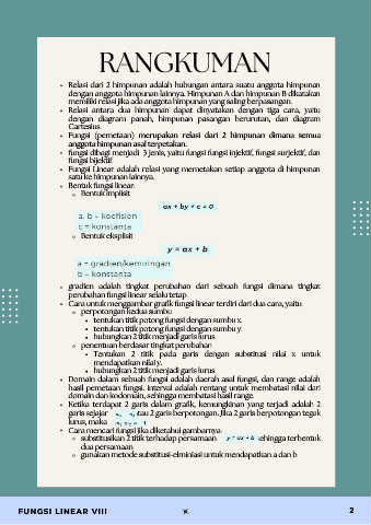 Fungsi Linear adalah relasi yang memetakan setiap anggota di himpunan