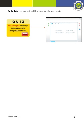 Pada Quiz, terdapat button klik untuk memulai quiz tersebut Animasi 2D dan 3D 6