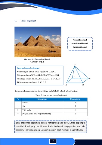 Sifat-sifat limas segiempat sesuai komponen pada tabel. Limas segiempat