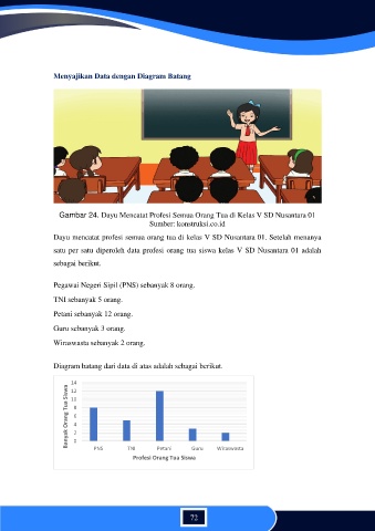 Dayu mencatat profesi semua orang tua di kelas V SD Nusantara 01. Setelah menanya