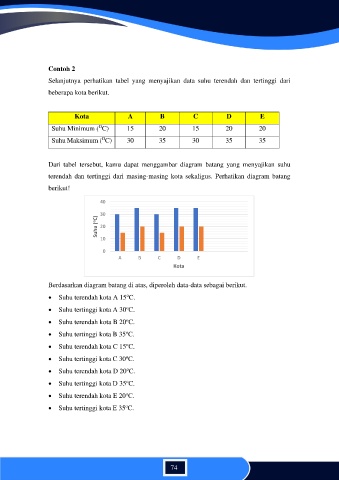Dari tabel tersebut, kamu dapat menggambar diagram batang yang menyajikan suhu