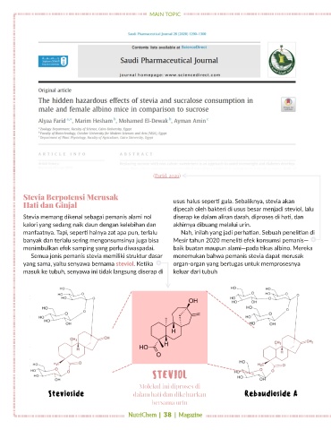yang sama, yaitu senyawa bernama steviol. Ketika organ‐organ yang bertugas untuk memprosesnya
