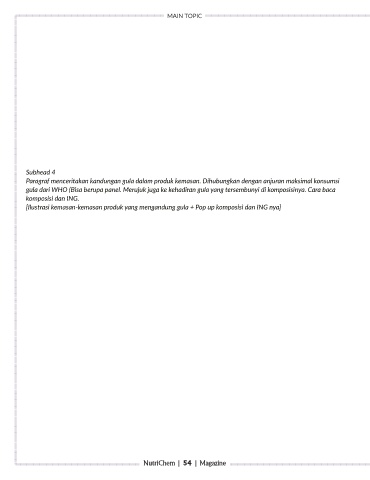 Paragraf menceritakan kandungan gula dalam produk kemasan. Dihubungkan dengan anjuran maksimal konsumsi