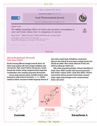yang sama, yaitu senyawa bernama steviol. Ketika organ‐organ yang bertugas untuk memprosesnya