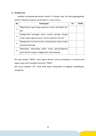Bila ada jawaban “TIDAK” maka segera lakukan review pembelajaran, terutama pada