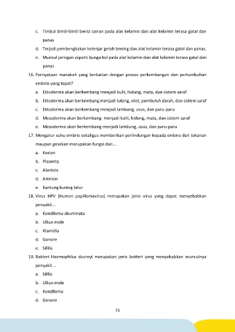c. Timbul bintil-bintil berisi cairan pada alat kelamin dan alat kelamin terasa gatal dan