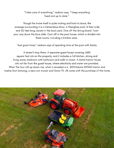 twelve-foot batwing, a zero-cut mower and Gator TX. All come with the purchase of the home.