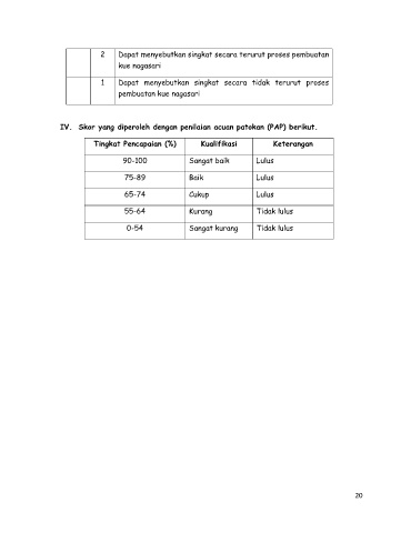 IV. Skor yang diperoleh dengan penilaian acuan patokan (PAP) berikut.