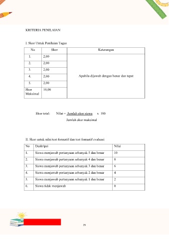 II. Skor untuk nilai test formatif dan test formatif evaluasi