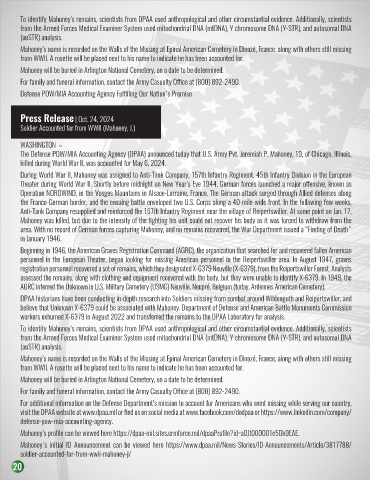 Mahoney's initial ID Announcement can be viewed here https://www.dpaa.mil/News-Stories/ID-Announcements/Article/3817788/