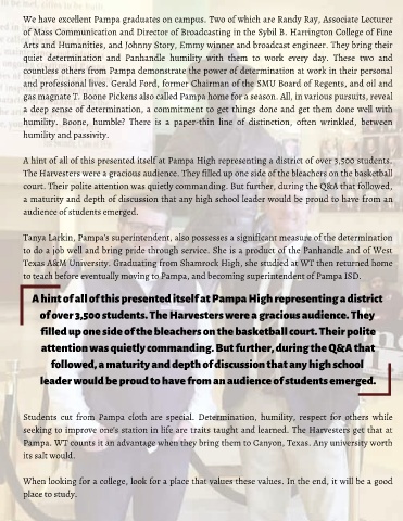 A hint of all of this presented itself at Pampa High representing a district of over 3,500 students.