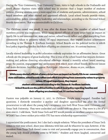 Passion was palpable on January 17, 2017, in Childress. People were engaged. Families had