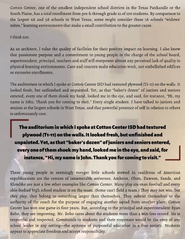 The auditorium in which I spoke at Cotton Center ISD had textured