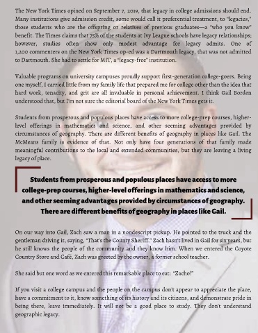 The New York Times opined on September 7, 2019, that legacy in college admissions should end.
