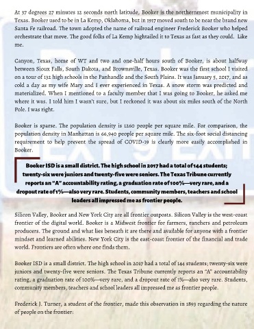 materialized. When I mentioned to a faculty member that I was going to Booker, he asked me