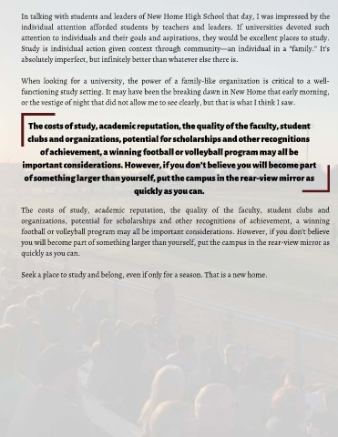 you will become part of something larger than yourself, put the campus in the rear-view mirror as
