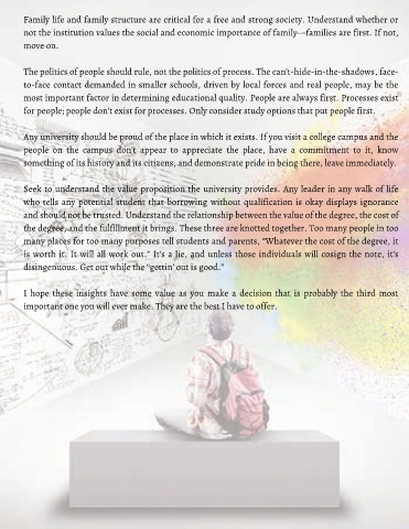 many places for too many purposes tell students and parents, “Whatever the cost of the degree, it