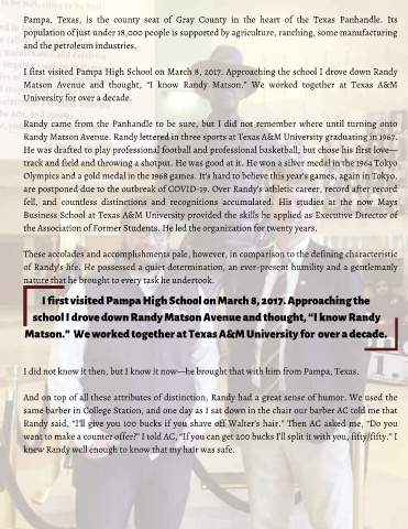 Matson Avenue and thought, “I know Randy Matson.” We worked together at Texas A&M