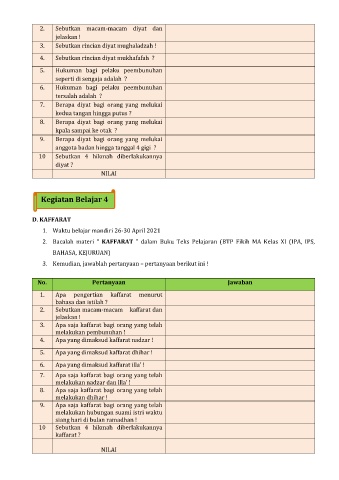 2. Bacalah materi “ KAFFARAT ” dalam Buku Teks Pelajaran (BTP Fikih MA Kelas XI (IPA, IPS,