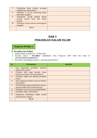 2. Bacalah materi “ Peradilan” dalamBuku Teks Pelajaran (BTP Fikih MA Kelas XI