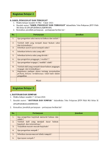 7. Bacalah materi “ BAYYINAH DAN SUMPAH ” dalamBuku Teks Pelajaran (BTP Fikih MA Kelas XI