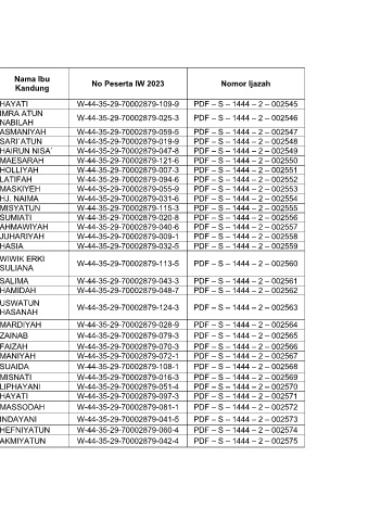 No Nama Santri Tempat Lahir L/P No Peserta IW 2023 Nomor Ijazah