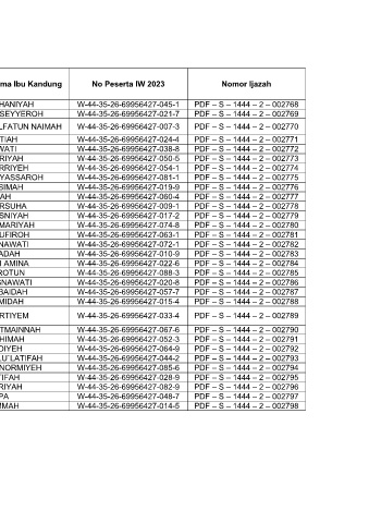 No Nama Santri Tempat Lahir L/P Nama Ibu Kandung No Peserta IW 2023 Nomor Ijazah