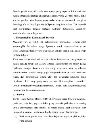 Berita (Sedia Willing Barus, 2010: 26-27) merupakan laporan mengenai