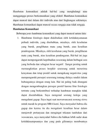 mengganggu proses berkomunikasi yang efektif. Hambatan komunikasi