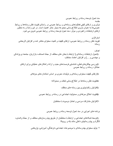 %u0633%u0646%u062f %u062a%u062d%u0648%u0644 %u062a%u0648%u0633%u0639%u0647 %u0631%u0633%u0627%u0646%u0647 %u0648 %u0631%u0648%u0627%u0628%u0637 %u0639%u0645%u0648%u0645%u06cc%u0645%u0642%u062f%u0645%u0647%u0646%u0648%u0622%u0648%u0631%u06cc %u0648 %u0627%u0631%u062a%u0642%u0627%u06cc %u06a9%u06cc%u0641%u06cc %u0641%u0639%u0627%u0644%u06cc%u062a%u0647%u0627%u06cc %u0631%u0633%u0627%u0646%u0647%u0627%u06cc %u0648 %u0631%u0648%u0627%u0628%u0637 %u0639%u0645%u0648%u0645%u06cc %u062f%u0631 %u0631%u0627%u0633%u062a%u0627%u06cc %u062a%u0642%u0648%u06cc%u062a %u0646%u0642%u0634 %u0631%u0633%u0627%u0646%u0647%u0647%u0627 %u0648 %u0631%u0648%u0627%u0628%u0637%u0639%u0645%u0648%u0645%u06cc%u0647%u0627 %u0628%u0647 %u0639%u0646%u0648%u0627%u0646 %u0628%u0627%u0632%u0648%u06cc %u0627%u0637%u0627%u0644%u0639%u0631%u0633%u0627%u0646%u06cc %u0645%u062c%u0645%u0648%u0639%u0647 %u0628%u0633%u06cc%u0627%u0631 %u062d%u0627%u0626%u0632 %u0627%u0647%u0645%u06cc%u062a %u0627%u0633%u062a. %u062f%u0631 %u0627%u06cc%u0646 %u0631%u0627%u0633%u062a%u0627 %u0648 %u0628%u0647 %u0645%u0646%u0638%u0648%u0631 %u0627%u0631%u062a%u0642%u0627%u06cc %u0627%u0631%u062a%u0628%u0627%u0637%u0627%u062a %u0631%u0627%u0647%u0628%u0631%u062f%u06cc %u0648 %u0645%u0648%u062b%u0631%u060c %u0633%u0646%u062f %u062a%u062d%u0648%u0644 %u062a%u0648%u0633%u0639%u0647 %u0631%u0633%u0627%u0646%u0647 %u0648 %u0631%u0648%u0627%u0628%u0637 %u0639%u0645%u0648%u0645%u06cc %u062a%u062f%u0648%u06cc%u0646 %u0645%u06cc %u0634%u0648%u062f.%u0627%u0633%u062a%u0631%u0627%u062a%u0698%u06cc%u062a%u0642%u0648%u06cc%u062a %u0646%u0642%u0634 %u0631%u0633%u0627%u0646%u0647 %u0648 %u0631%u0648%u0627%u0628%u0637 %u0639%u0645%u0648%u0645%u06cc%u060c %u0627%u0631%u062a%u0642%u0627%u06cc %u06a9%u06cc%u0641%u06cc%u062a %u0648 %u06a9%u0645%u06cc%u062a %u0645%u062d%u062a%u0648%u0627%u06cc %u0645%u0646%u062a%u0634%u0631 %u0634%u062f%u0647 %u0648 %u0627%u0641%u0632%u0627%u06cc%u0634 %u0627%u062b%u0631%u0628%u062e%u0634%u06cc %u0631%u0633%u0627%u0646%u0647%u0627%u0647%u062f%u0627%u0641 -1%u062a%u062d%u0648%u0644 %u0627%u0631%u062a%u0628%u0627%u0637%u0627%u062a %u0631%u0633%u0627%u0646%u0647%u0627%u06cc ) %u0627%u0631%u062a%u0628%u0627%u0637 %u0628%u0627 %u0628%u062e%u0634 %u0647%u0627%u06cc %u0645%u062e%u062a%u0644%u0641 %u0627%u0632 %u062c%u0645%u0644%u0647 %u0627%u0635%u0646%u0627%u0641%u060c %u0628%u0627%u0632%u0627%u0631%u06cc%u0627%u0646%u060c %u062c%u0627%u0645%u0639%u0647 %u06cc %u067e%u0632%u0634%u06a9%u06cc %u0648 %u0645%u0647%u0646%u062f%u0633%u06cc %u0648 ...( %u0648 %u0627%u0641%u0632%u0627%u06cc%u0634 %u0627%u0639%u062a%u0645%u0627%u062f %u0645%u062e%u0627%u0637%u0628-2%u0628%u0631%u0631%u0633%u06cc %u0686%u0627%u0644%u0634%u0647%u0627%u06cc %u0641%u0639%u0644%u06cc%u060c %u0634%u0646%u0627%u0633%u0627%u06cc%u06cc %u0641%u0631%u0635%u062a%u0647%u0627%u06cc %u062c%u062f%u06cc%u062f %u0648 %u0627%u0631%u0627%u0626%u0647 %u0631%u0627%u0647%u06a9%u0627%u0631%u0647%u0627%u06cc %u0639%u0645%u0644%u06cc%u0627%u062a%u06cc %u0628%u0631%u0627%u06cc %u0627%u0631%u062a%u0642%u0627%u06cc %u0639%u0645%u0644%u06a9%u0631%u062f %u0631%u0633%u0627%u0646%u0647 %u0648 %u0631%u0648%u0627%u0628%u0637 %u0639%u0645%u0648%u0645%u06cc-3%u0627%u0631%u062a%u0642%u0627%u06cc %u06a9%u06cc%u0641%u06cc%u062a %u0645%u062d%u062a%u0648%u0627%u06cc %u0631%u0633%u0627%u0646%u0647%u0627%u06cc %u0648 %u062a%u0648%u0644%u06cc%u062f%u0627%u062a %u062e%u0628%u0631%u06cc %u0628%u0631 %u0627%u0633%u0627%u0633 %u0627%u0633%u062a%u0627%u0646%u062f%u0627%u0631%u062f%u0647%u0627%u06cc %u062d%u0631%u0641%u0647%u0627%u06cc-4%u062a%u0642%u0648%u06cc%u062a %u0646%u0642%u0634 %u0631%u0633%u0627%u0646%u0647%u0647%u0627 %u062f%u0631 %u0627%u0637%u0627%u0644%u0639%u0631%u0633%u0627%u0646%u06cc %u0634%u0641%u0627%u0641 %u0648 %u0645%u0633%u0626%u0648%u0627%u0644%u0646%u0647-5%u0627%u0641%u0632%u0627%u06cc%u0634 %u0631%u0642%u0627%u0628%u062a%u067e%u0630%u06cc%u0631%u06cc %u0628%u06cc%u0646 %u0631%u0633%u0627%u0646%u0647 %u0647%u0627%u06cc %u0645%u062e%u062a%u0644%u0641 -6%u062a%u0642%u0648%u06cc%u062a %u0627%u062e%u0627%u0644%u0642 %u062d%u0631%u0641%u0647%u0627%u06cc %u0648 %u0645%u0633%u0626%u0648%u0644%u06cc%u062a %u0627%u062c%u062a%u0645%u0627%u0639%u06cc %u062f%u0631 %u0631%u0633%u0627%u0646%u0647 %u0648 %u0631%u0648%u0627%u0628%u0637 %u0639%u0645%u0648%u0645%u06cc-7%u0627%u0641%u0632%u0627%u06cc%u0634 %u0645%u0634%u0627%u0631%u06a9%u062a %u0645%u0631%u062f%u0645%u06cc %u0648 %u062a%u0639%u0627%u0645%u0644 %u062f%u0648%u0633%u0648%u06cc%u0647 %u0628%u0627 %u0645%u062e%u0627%u0637%u0628%u0627%u0646%u0628%u0631%u0646%u0627%u0645%u0647 %u0647%u0627%u06cc %u0627%u062c%u0631%u0627%u06cc%u06cc %u062f%u0631 %u0633%u0646%u062f %u062a%u062d%u0648%u0644 %u062a%u0648%u0633%u0639%u0647 %u0631%u0633%u0627%u0646%u0647 %u0648 %u0631%u0648%u0627%u0628%u0637 %u0639%u0645%u0648%u0645%u06cc .1%u062a%u0648%u0633%u0639%u0647 %u0634%u0628%u06a9%u0647%u0647%u0627%u06cc%u0627%u062c%u062a%u0645%u0627%u0639%u06cc %u0648 %u0627%u0631%u062a%u0628%u0627%u0637 %u0628%u0627 %u0645%u062e%u0627%u0637%u0628%u0627%u0646 %u0627%u0632 %u0637%u0631%u06cc%u0642 %u067e%u06cc%u0627%u0645 %u0631%u0633%u0627%u0646%u0647%u0627%u06cc %u0645%u062e%u062a%u0644%u0641 %u0648 %u0627%u0632 %u062c%u0645%u0644%u0647 %u0648%u0627%u062a%u0633%u0627%u067e%u060c %u062a%u0644%u06af%u0631%u0627%u0645 %u0648 %u067e%u06cc%u0627%u0645 %u0631%u0633%u0627%u0646%u0647%u0627%u06cc %u062f%u0627%u062e%u0644%u06cc %u0645%u0627%u0646%u0646%u062f %u0628%u0644%u0647 %u0648 %u0631%u0648%u0628%u06cc%u06a9%u0627%u06f2. %u062a%u0648%u0644%u06cc%u062f %u0645%u062d%u062a%u0648%u0627%u06cc %u0686%u0646%u062f%u0631%u0633%u0627%u0646%u0647%u0627%u06cc %u0628%u0627 %u0645%u0648%u0636%u0648%u0639%u0627%u062a %u0627%u062c%u062a%u0645%u0627%u0639%u06cc%u060c %u0641%u0631%u0647%u0646%u06af%u06cc%u060c %u0622%u0645%u0648%u0632%u0634%u06cc%u060c %u067e%u0698%u0648%u0647%u0634%u06cc