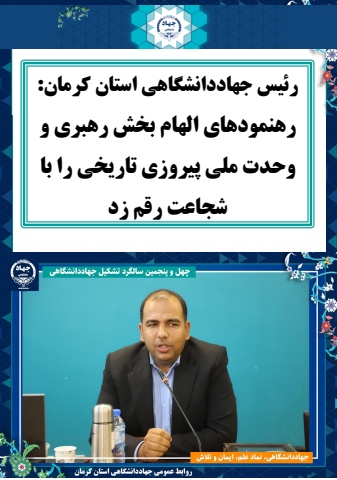 %u0631%u0626%u06cc%u0633 %u062c%u0647%u0627%u062f%u062f%u0627%u0646%u0634%u06af%u0627%u0647%u06cc %u0627%u0633%u062a%u0627%u0646 %u06a9%u0631%u0645%u0627%u0646:%u0631%u0647%u0646%u0645%u0648%u062f%u0647%u0627%u06cc %u0627%u0644%u0647%u0627%u0645 %u0628%u062e%u0634 %u0631%u0647%u0628%u0631%u06cc %u0648 %u0648%u062d%u062f%u062a %u0645%u0644%u06cc %u067e%u06cc%u0631%u0648%u0632%u06cc %u062a%u0627%u0631%u06cc%u062e%u06cc %u0631%u0627 %u0628%u0627 %u0634%u062c%u0627%u0639%u062a %u0631%u0642%u0645 %u0632%u062f