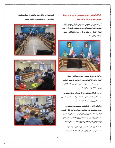 4%u06a9%u0627%u0631%u06af%u0627%u0647 %u0627%u0645%u0648%u0632%u0634%u06cc %u00bb%u0647%u0648%u0634 %u0645%u0635%u0646%u0648%u0639%u06cc%u060c %u0627%u0628%u0632%u0627%u0631%u06cc %u0646%u0648 %u062f%u0631 %u0631%u0648%u0627%u0628%u0637 %u0639%u0645%u0648%u0645%u06cc %u0634%u0647%u0631%u062f%u0627%u0631%u06cc %u0647%u0627%u00ab %u0628%u0631%u06af%u0632%u0627%u0631 %u0634%u062f%u06a9%u0627%u0631%u06af%u0627%u0647 %u0627%u0645%u0648%u0632%u0634%u06cc %u00bb%u0647%u0648%u0634 %u0645%u0635%u0646%u0648%u0639%u06cc%u060c %u0627%u0628%u0632%u0627%u0631%u06cc %u0646%u0648 %u062f%u0631 %u0631%u0648%u0627%u0628%u0637 %u0639%u0645%u0648%u0645%u06cc%u00ab %u0648%u06cc%u0698%u0647 %u0645%u0633%u0626%u0648%u0644%u06cc%u0646 %u0631%u0648%u0627%u0628%u0637 %u0639%u0645%u0648%u0645%u06cc %u0634%u0647%u0631%u062f%u0627%u0631%u06cc %u0647%u0627%u06cc %u0627%u0633%u062a%u0627%u0646 %u06a9%u0631%u0645%u0627%u0646 %u062f%u0631 %u062f%u0641%u062a%u0631 %u0645%u0631%u06a9%u0632%u06cc %u062c%u0647%u0627%u062f%u062f%u0627%u0646%u0634%u06af%u0627%u0647%u06cc %u0627%u0633%u062a%u0627%u0646 %u06a9%u0631%u0645%u0627%u0646 %u0628%u0631%u06af%u0632%u0627%u0631 %u0634%u062f.%u0628%u0647 %u06af%u0632%u0627%u0631%u0634 %u0631%u0648%u0627%u0628%u0637 %u0639%u0645%u0648%u0645%u06cc %u062c%u0647%u0627%u062f%u062f%u0627%u0646%u0634%u06af%u0627%u0647%u06cc %u0627%u0633%u062a%u0627%u0646 %u06a9%u0631%u0645%u0627%u0646%u060c %u0627%u06cc%u0646 %u06a9%u0627%u0631%u06af%u0627%u0647 %u0627%u0645%u0648%u0632%u0634%u06cc %u06f6%u0633%u0627%u0639%u062a%u0647 %u0628%u0627 %u062d%u0636%u0648%u0631 %u0627%u0633%u0627%u062a%u06cc%u062f %u0645%u062c%u0631%u0628 %u0648 %u0628%u0647 %u0646%u0627%u0645 %u062f%u0631 %u062d%u0648%u0632%u0647 %u0647%u0648%u0634 %u0645%u0635%u0646%u0648%u0639%u06cc%u062f%u06a9%u062a%u0631 %u06af%u0644%u0627%u0628 %u067e%u0648%u0631 %u0648 %u062d%u06a9%u0627%u06a9 %u0632%u0627%u062f%u0647 %u0628%u0631%u06af%u0632%u0627%u0631 %u0634%u062f.%u062f%u0631 %u0627%u06cc%u0646 %u06af%u0627%u0631%u06af%u0627%u0647 %u0627%u0645%u0648%u0632%u0634%u06cc %u0628%u0647 %u06a9%u0627%u0631%u0628%u0631%u062f%u0647%u0627%u06cc %u0647%u0648%u0634 %u0645%u0635%u0646%u0648%u0639%u06cc %u062f%u0631 %u0635%u0646%u0627%u06cc%u0639 %u0645%u062e%u062a%u0644%u0641 %u0627%u0634%u0627%u0631%u0647 %u0634%u062f %u06a9%u0647 %u0647%u0648%u0634 %u0645%u0635%u0646%u0648%u0639%u06cc %u062a%u062d%u0648%u0644%u06cc %u062f%u0631 %u0632%u0646%u062f%u06af%u06cc %u0631%u0648%u0632%u0645%u0631%u0647 %u0627%u06cc%u062c%u0627%u062f %u06a9%u0631%u062f%u0647 %u0627%u0633%u062a.%u0628%u0631 %u0627%u0633%u0627%u0633 %u0622%u062e%u0631%u06cc%u0646 %u062a%u062d%u0642%u06cc%u0642%u0627%u062a%u060c %u0633%u06cc%u0633%u062a%u0645%u0647%u0627%u06cc %u0645%u0628%u062a%u0646%u06cc %u0628%u0631 %u0647%u0648%u0634 %u0645%u0635%u0646%u0648%u0639%u06cc %u062f%u0631 %u062a%u0634%u062e%u06cc%u0635 %u0628%u06cc%u0645%u0627%u0631%u06cc%u0647%u0627 %u0646%u06cc%u0632 %u0646%u0642%u0634 %u06a9%u0644%u06cc%u062f%u06cc %u0627%u06cc%u0641%u0627 %u06a9%u0631%u062f%u0647%u0627%u0646%u062f %u0648 %u0627%u0644%u06af%u0648%u0631%u06cc%u062a%u0645%u0647%u0627%u06cc %u0647%u0648%u0634 %u0645%u0635%u0646%u0648%u0639%u06cc %u0628%u0627 %u062a%u062d%u0644%u06cc%u0644 %u062f%u0627%u062f%u0647%u0647%u0627%u06cc %u067e%u0632%u0634%u06a9%u06cc%u060c %u0628%u0647 %u062a%u0634%u062e%u06cc%u0635 %u0632%u0648%u062f%u0647%u0646%u06af%u0627%u0645 %u0628%u06cc%u0645%u0627%u0631%u06cc%u0647%u0627 %u0648 %u0627%u0631%u0627%u0626%u0647 %u062f%u0631%u0645%u0627%u0646%u0647%u0627%u06cc %u0634%u062e%u0635%u06cc%u0633%u0627%u0632%u06cc%u0634%u062f%u0647 %u06a9%u0645%u06a9 %u0645%u06cc%u06a9%u0646%u0646%u062f.%u06a9%u0627%u0631%u0634%u0646%u0627%u0633%u0627%u0646 %u062d%u0648%u0632%u0647 %u0641%u0646%u0627%u0648%u0631%u06cc %u0627%u0632 %u0631%u0634%u062f %u0628%u06cc%u0633%u0627%u0628%u0642%u0647 %u0647%u0648%u0634 %u0645%u0635%u0646%u0648%u0639%u06cc %u062f%u0631 %u0633%u0627%u0644 %u062c%u0627%u0631%u06cc %u062e%u0628%u0631 %u062f%u0627%u062f%u0647%u0627%u0646%u062f %u06a9%u0647 %u062a%u0623%u062b%u06cc%u0631%u0627%u062a %u06af%u0633%u062a%u0631%u062f%u0647%u0627%u06cc %u0628%u0631 %u0628%u062e%u0634%u0647%u0627%u06cc %u0645%u062e%u062a%u0644%u0641 %u0627%u0632 %u062c%u0645%u0644%u0647 %u0633%u0644%u0627%u0645%u062a%u060c %u062d%u0645%u0644%u0648%u0646%u0642%u0644 %u0648 %u0627%u0631%u062a%u0628%u0627%u0637%u0627%u062a %u0648 ... %u062f%u0627%u0634%u062a%u0647 %u0627%u0633%u062a.