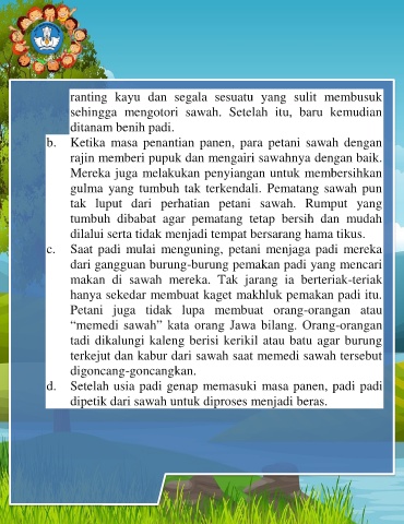 b.  Ketika  masa  penantian  panen,  para  petani  sawah  dengan