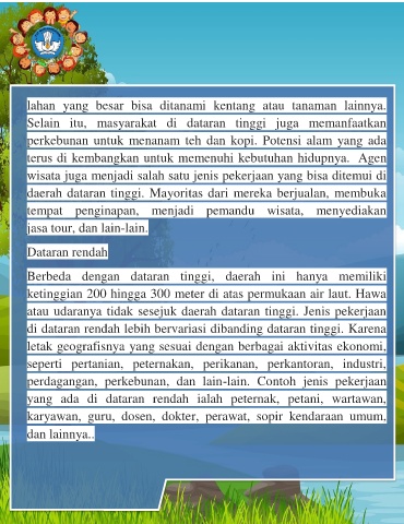 atau udaranya tidak sesejuk daerah dataran tinggi. Jenis pekerjaan