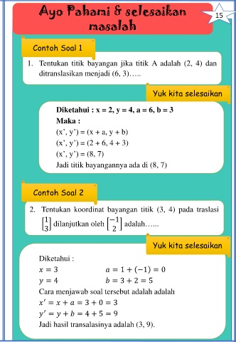 2. Tentukan koordinat bayangan titik (3, 4) pada traslasi