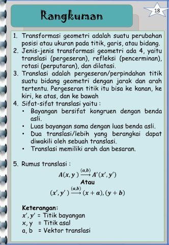 2. Jenis-jenis transformasi geometri ada 4, yaitu