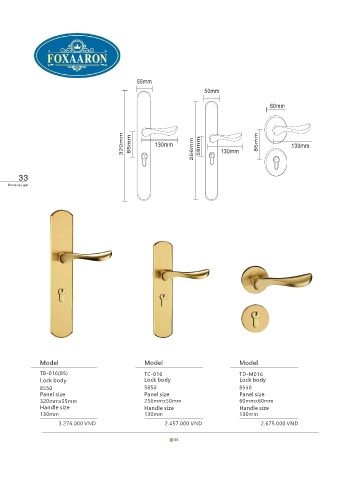 Khoá tay gạt Panel size 320mmx55mm Panel size 256mmx50mm