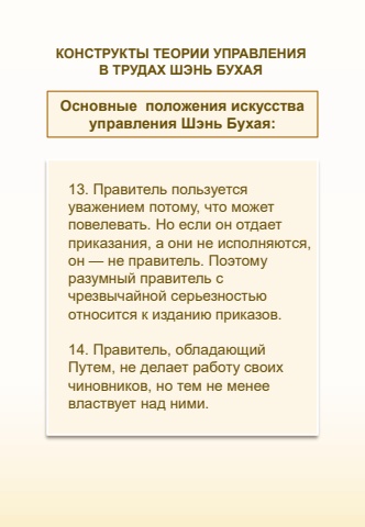 13. %u041f%u0440%u0430%u0432%u0438%u0442%u0435%u043b%u044c %u043f%u043e%u043b%u044c%u0437%u0443%u0435%u0442%u0441%u044f %u0443%u0432%u0430%u0436%u0435%u043d%u0438%u0435%u043c %u043f%u043e%u0442%u043e%u043c%u0443, %u0447%u0442%u043e %u043c%u043e%u0436%u0435%u0442 %u043f%u043e%u0432%u0435%u043b%u0435%u0432%u0430%u0442%u044c. %u041d%u043e %u0435%u0441%u043b%u0438 %u043e%u043d %u043e%u0442%u0434%u0430%u0435%u0442 %u043f%u0440%u0438%u043a%u0430%u0437%u0430%u043d%u0438%u044f, %u0430 %u043e%u043d%u0438 %u043d%u0435 %u0438%u0441%u043f%u043e%u043b%u043d%u044f%u044e%u0442%u0441%u044f, %u043e%u043d %u2014 %u043d%u0435 %u043f%u0440%u0430%u0432%u0438%u0442%u0435%u043b%u044c. %u041f%u043e%u044d%u0442%u043e%u043c%u0443 %u0440%u0430%u0437%u0443%u043c%u043d%u044b%u0439 %u043f%u0440%u0430%u0432%u0438%u0442%u0435%u043b%u044c %u0441 %u0447%u0440%u0435%u0437%u0432%u044b%u0447%u0430%u0439%u043d%u043e%u0439 %u0441%u0435%u0440%u044c%u0435%u0437%u043d%u043e%u0441%u0442%u044c%u044e %u043e%u0442%u043d%u043e%u0441%u0438%u0442%u0441%u044f %u043a %u0438%u0437%u0434%u0430%u043d%u0438%u044e %u043f%u0440%u0438%u043a%u0430%u0437%u043e%u0432. 14. %u041f%u0440%u0430%u0432%u0438%u0442%u0435%u043b%u044c, %u043e%u0431%u043b%u0430%u0434%u0430%u044e%u0449%u0438%u0439 %u041f%u0443%u0442%u0435%u043c, %u043d%u0435 %u0434%u0435%u043b%u0430%u0435%u0442 %u0440%u0430%u0431%u043e%u0442%u0443 %u0441%u0432%u043e%u0438%u0445 %u0447%u0438%u043d%u043e%u0432%u043d%u0438%u043a%u043e%u0432, %u043d%u043e %u0442%u0435%u043c %u043d%u0435 %u043c%u0435%u043d%u0435%u0435 %u0432%u043b%u0430%u0441%u0442%u0432%u0443%u0435%u0442 %u043d%u0430%u0434 %u043d%u0438%u043c%u0438. %u041e%u0441%u043d%u043e%u0432%u043d%u044b%u0435 %u043f%u043e%u043b%u043e%u0436%u0435%u043d%u0438%u044f %u0438%u0441%u043a%u0443%u0441%u0441%u0442%u0432%u0430 %u0443%u043f%u0440%u0430%u0432%u043b%u0435%u043d%u0438%u044f %u0428%u044d%u043d%u044c %u0411%u0443%u0445%u0430%u044f: %u041a%u041e%u041d%u0421%u0422%u0420%u0423%u041a%u0422%u042b %u0422%u0415%u041e%u0420%u0418%u0418 %u0423%u041f%u0420%u0410%u0412%u041b%u0415%u041d%u0418%u042f %u0412 %u0422%u0420%u0423%u0414%u0410%u0425 %u0428%u042d%u041d%u042c %u0411%u0423%u0425%u0410%u042f