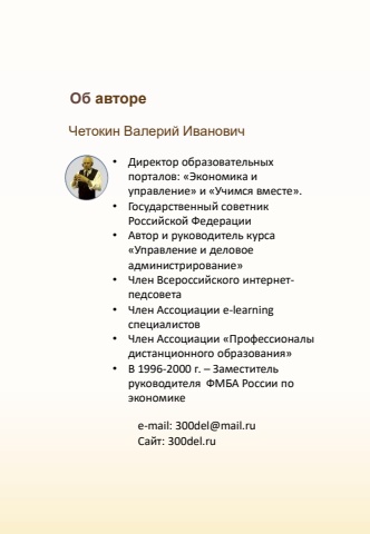 %u041e%u0431 %u0430%u0432%u0442%u043e%u0440%u0435%u0427%u0435%u0442%u043e%u043a%u0438%u043d %u0412%u0430%u043b%u0435%u0440%u0438%u0439 %u0418%u0432%u0430%u043d%u043e%u0432%u0438%u0447%u2022 %u0414%u0438%u0440%u0435%u043a%u0442%u043e%u0440 %u043e%u0431%u0440%u0430%u0437%u043e%u0432%u0430%u0442%u0435%u043b%u044c%u043d%u044b%u0445 %u043f%u043e%u0440%u0442%u0430%u043b%u043e%u0432: %u00ab%u042d%u043a%u043e%u043d%u043e%u043c%u0438%u043a%u0430 %u0438 %u0443%u043f%u0440%u0430%u0432%u043b%u0435%u043d%u0438%u0435%u00bb %u0438 %u00ab%u0423%u0447%u0438%u043c%u0441%u044f %u0432%u043c%u0435%u0441%u0442%u0435%u00bb.%u2022 %u0413%u043e%u0441%u0443%u0434%u0430%u0440%u0441%u0442%u0432%u0435%u043d%u043d%u044b%u0439 %u0441%u043e%u0432%u0435%u0442%u043d%u0438%u043a%u0420%u043e%u0441%u0441%u0438%u0439%u0441%u043a%u043e%u0439 %u0424%u0435%u0434%u0435%u0440%u0430%u0446%u0438%u0438%u2022 %u0410%u0432%u0442%u043e%u0440 %u0438 %u0440%u0443%u043a%u043e%u0432%u043e%u0434%u0438%u0442%u0435%u043b%u044c %u043a%u0443%u0440%u0441%u0430 %u00ab%u0423%u043f%u0440%u0430%u0432%u043b%u0435%u043d%u0438%u0435 %u0438 %u0434%u0435%u043b%u043e%u0432%u043e%u0435 %u0430%u0434%u043c%u0438%u043d%u0438%u0441%u0442%u0440%u0438%u0440%u043e%u0432%u0430%u043d%u0438%u0435%u00bb%u2022 %u0427%u043b%u0435%u043d %u0412%u0441%u0435%u0440%u043e%u0441%u0441%u0438%u0439%u0441%u043a%u043e%u0433%u043e %u0438%u043d%u0442%u0435%u0440%u043d%u0435%u0442%u043f%u0435%u0434%u0441%u043e%u0432%u0435%u0442%u0430%u2022 %u0427%u043b%u0435%u043d %u0410%u0441%u0441%u043e%u0446%u0438%u0430%u0446%u0438%u0438 e-learning %u0441%u043f%u0435%u0446%u0438%u0430%u043b%u0438%u0441%u0442%u043e%u0432%u2022 %u0427%u043b%u0435%u043d %u0410%u0441%u0441%u043e%u0446%u0438%u0430%u0446%u0438%u0438 %u00ab%u041f%u0440%u043e%u0444%u0435%u0441%u0441%u0438%u043e%u043d%u0430%u043b%u044b %u0434%u0438%u0441%u0442%u0430%u043d%u0446%u0438%u043e%u043d%u043d%u043e%u0433%u043e %u043e%u0431%u0440%u0430%u0437%u043e%u0432%u0430%u043d%u0438%u044f%u00bb%u2022 %u0412 1996-2000 %u0433. %u2013 %u0417%u0430%u043c%u0435%u0441%u0442%u0438%u0442%u0435%u043b%u044c %u0440%u0443%u043a%u043e%u0432%u043e%u0434%u0438%u0442%u0435%u043b%u044f %u0424%u041c%u0411%u0410 %u0420%u043e%u0441%u0441%u0438%u0438 %u043f%u043e %u044d%u043a%u043e%u043d%u043e%u043c%u0438%u043a%u0435 e-mail: 300del@mail.ru%u0421%u0430%u0439%u0442: 300del.ru