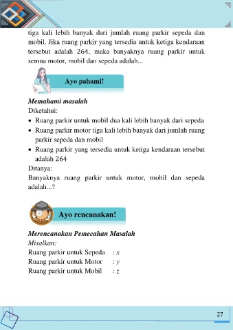 mobil. Jika ruang parkir yang tersedia untuk ketiga kendaraan