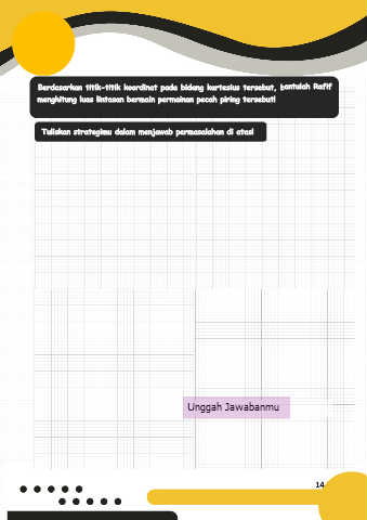 Berdasarkan titik-titik koordinat pada bidang kartesius tersebut, bantulah Rafif menghitung luas lintasan bermain permainan pecah piring tersebut! Tuliskan strategimu dalam menjawab permasalahan di atas! 14